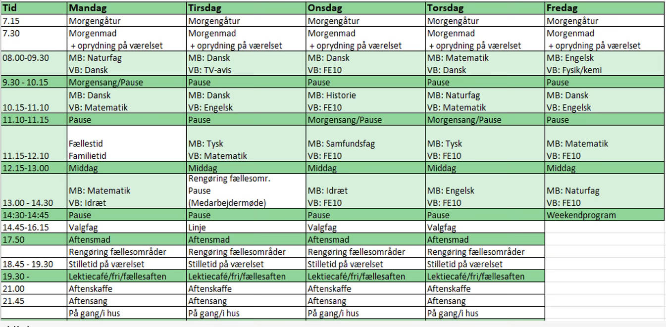 gennemsnitlig dag på Farsø Efterskole ser ud.
